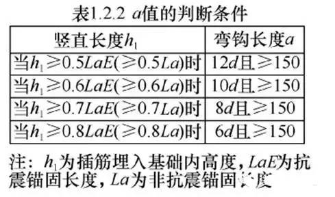 答:是通过一个表来判断的。也就是插筋埋入基础的高度和锚固长度的比较来判断,见下表。
