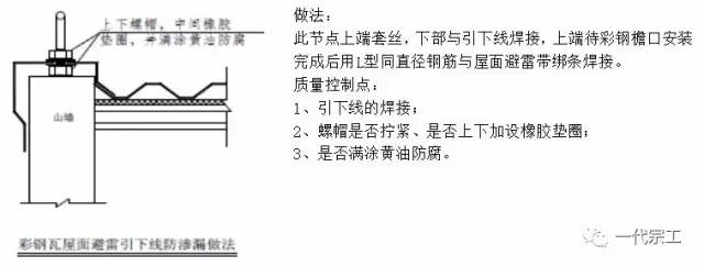 1)彩钢屋面避雷引下线防渗漏节点做法