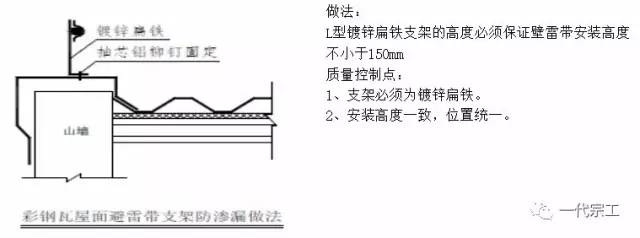 2)彩钢屋面避雷带支架防渗漏节点做法