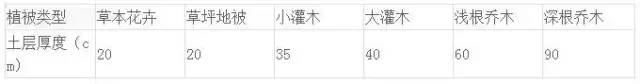 2.栽植植物铺土,应满足以下最低种植土层厚度: