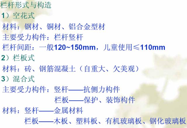 ③栏杆扶手:栏杆扶手是设在梯段及平台边缘的安全保护构件。