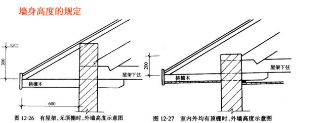 4、无天棚且出檐宽度超出600mm按实砌高度计算