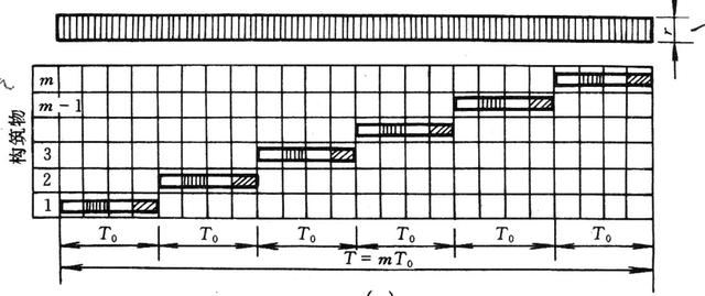② 施工段数(m)按平面或空间划分的施工区段 。施工段的划分尽量保证各段消耗的劳动量大致相等,且满足多工种同时施工对工作面要求,使mn;