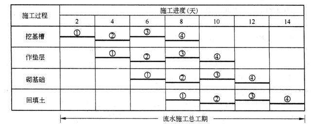 ① 施工过程数(n)工序数即专业工作队数,施工过程数视工程大小和复杂程度确定;