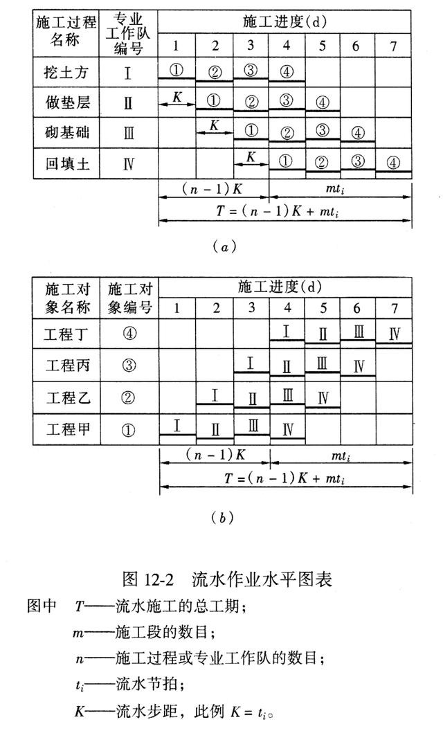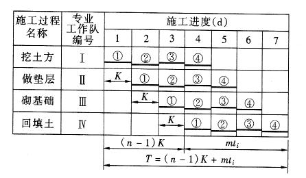 ④ 流水步距(ki)相邻施工队进场时间间隔;