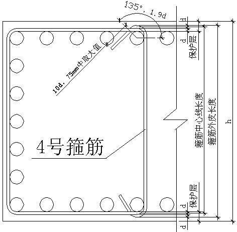 4号箍筋长度=(h-保护层*2+d*2)+1.9d*2+max(10d,75mm)*2