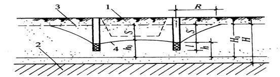 Q=1.366K(2H-S)S / (lgR-lgr) =1.366K(H2-h2) / (lgR/r)(m3/d)