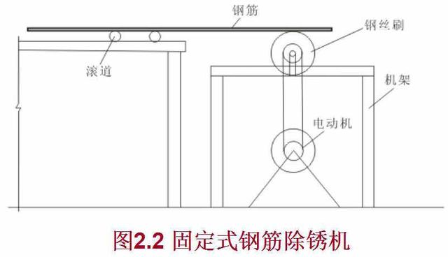 ①除锈机除锈对直径较细的盘条钢筋,通过冷拉和调直过程自动去锈;粗钢筋采用圆盘钢丝刷除锈机除锈。