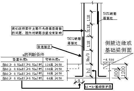 基础插筋长度=弯折长度a+竖直长度h1+非连接区Hn/3+搭接长度LlE