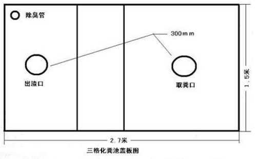 第一池的盖板要留出放便器的口和出粪渣的口,第二池的盖板也要留出一个口,便于清渣和疏通过粪管,第三池盖板要留出出粪口,便于出粪,每个口都要预制小盖。
