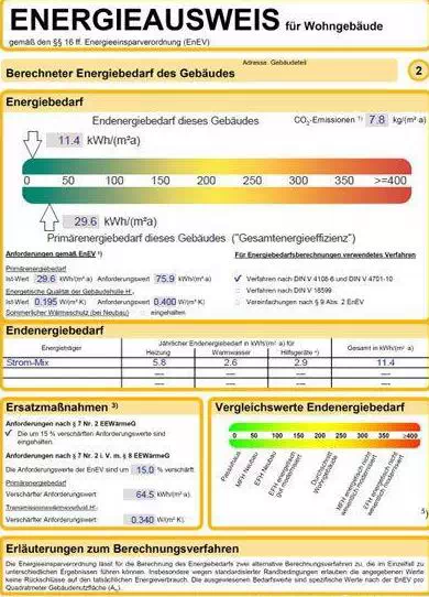 2002年,德国《能源节约条例》(EnEV2002)要求,建筑物中的能源使用情况要进行量化(包括供暖、空调、热水供应等方面),要建立建筑物的能源认证证书系统。建筑物的能源证书,与家用电器上的能效标签一样,反映了建筑物的能耗属性,另外还包括对建筑物进行节能改造的建议、措施及注意事项等。