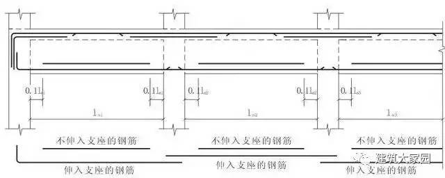 ③当梁上部设有第三排钢筋时,其延伸长度应由设计者注明。