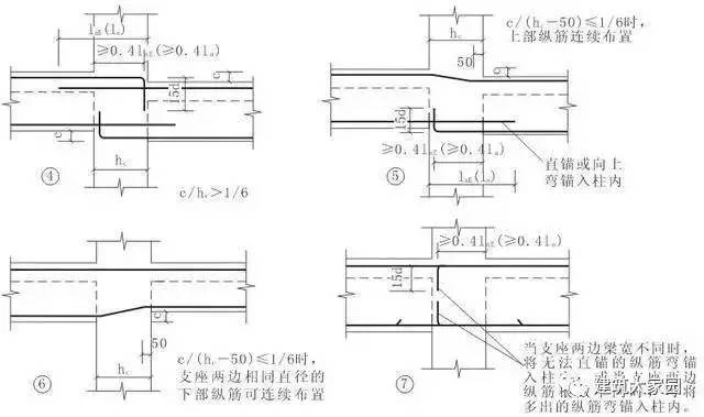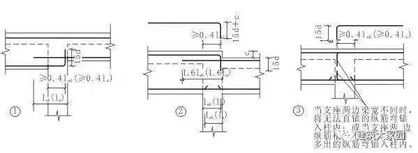 ②深入支座的梁下部纵向钢筋锚固构造见03G101-1P54-59。
