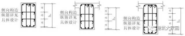 ③当hw450mm时,在梁的两个侧面应沿高度配置纵向构造筋;纵向构造筋间距a200mm。