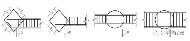 ②梁端与柱斜交,或与圆柱相交时的箍筋起始位置见03G 1011P63。