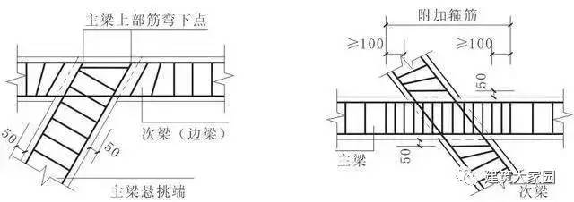 ②当悬臂梁由屋面框架梁延伸出来时,其配筋构造应由设计者补充。