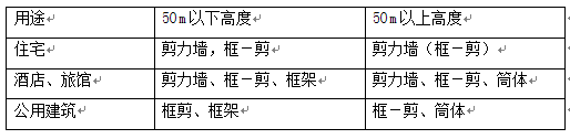不同的结构体系具有的强度和刚度是不一样的,故它们的适用设计也不相同,目前广泛应用的四大类结构: