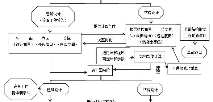 结构与建筑之间在各个阶段的关系可以用下面框图表示之:
