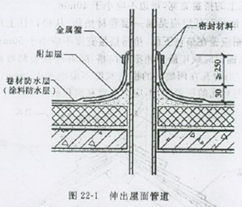 在屋顶施工时,有时要预埋一些穿屋顶的套管,可能设计图上还会标注预留长度为多少,这时我们就考虑,一般情况下,套管要比屋顶面的最终完成面高30cm以上,而屋顶结构混凝土的厚度大约在12-15cm,几乎屋面都要保温,保温厚度加防水加找平等厚度一般在30cm,这时我们屋顶套管长度一般要预留到80-90cm长度才行。
