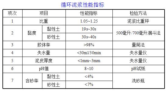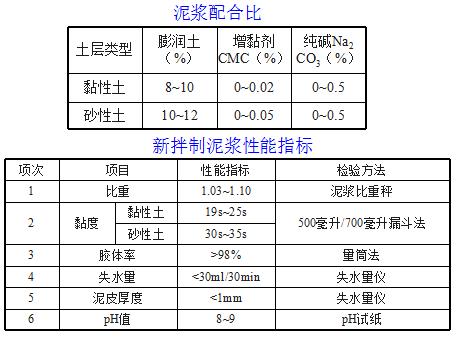 (2) 水的选择:饮用水可直接使用。水质要求:钙离子浓度应不超过100ppm,以防膨润土凝结和沉降分离;钠离子浓度不超过500ppm,以防膨润土湿胀性过多下降;pH 值为中性。超出这个范围时,应考虑在泥浆中掺加分散剂和使用耐盐性的材料,或改用盐水泥浆。