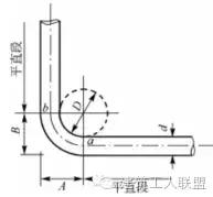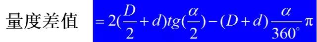 弯曲角度为,弯心直径为D时,量度差值的计算公式如下