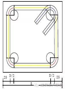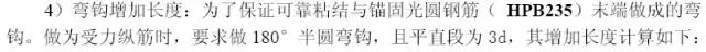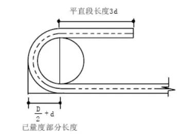 (1.07D+5.57d)+(0.285D+4.785d)=1.355D+10.355d,当取D=2.5d,平直长为5d时,两个弯钩增加值=14d 。