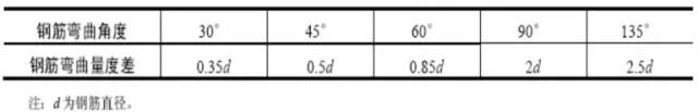 量度差值钢筋弯曲后的外包尺寸和中心线之间的差值。量度差值的大小与钢筋直径、弯曲角度、弯心直径等因素有关。
