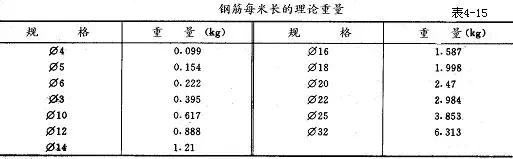 记住直径为10mm的钢筋每米重量为0.617kg,其他直径钢筋每米重量为直径(厘米为单位)的平方与0.617的乘积。