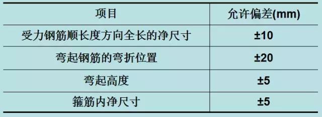 钢筋的加工有除锈、调直、下料剪切及弯曲成型。钢筋加工的形状、尺寸应符合设计要求,其偏差应符合下表的规定。