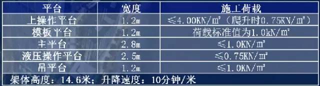 但一般机位较多,整体性不够好,承载力也不大。以QPM-50型液压自爬模系统为例,其性能参数如下: