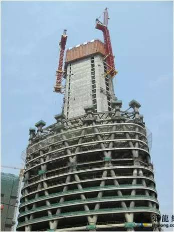 重庆环球金融中心、广州高德均为内外框筒一同施工: