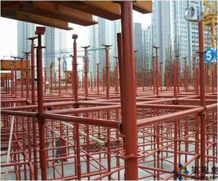 前述类型2,采取内外框筒一同施工的工艺,为尽可能加快施工进度,模板支撑体系可考虑采用新型模板体系,如:可调立杆盘扣式满堂脚手架,铝合金模板系统等快拆体系。