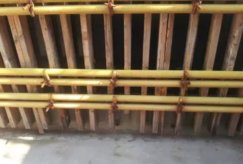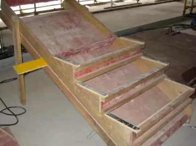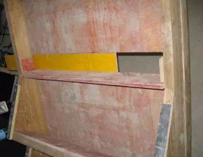 4)木方龙骨间距不宜超过100MM,木方侧面用小钉与模板固定,确保模板的受力均匀,木方表面顺直,不能有缺陷,裂缝,发现不合格木方及时调换。