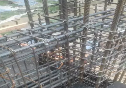 先把梁柱节点核心区的柱子箍筋按照图纸设计间距和规范要求排好,核心区箍筋四角用C10钢筋焊接牢固成型,并用扎丝临时绑扎固定在板面以上的框架柱竖筋上。