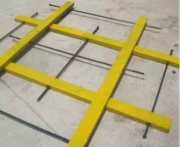 固定好所有定型箍筋后,开始架空绑扎短跨方向的主梁,根据主梁的高度确定梁上下排主筋的位置,并将梁用临时钢管架架空绑扎箍筋至梁成型。