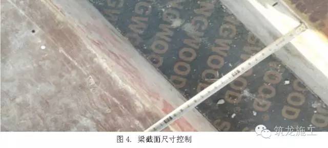 在梁模板加固好以后,用卷尺检查每个梁截面内部尺寸,并记录下来,允许误差【-5mm,4mm】。