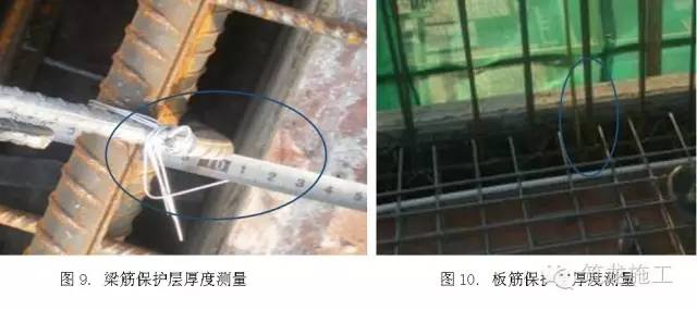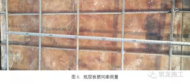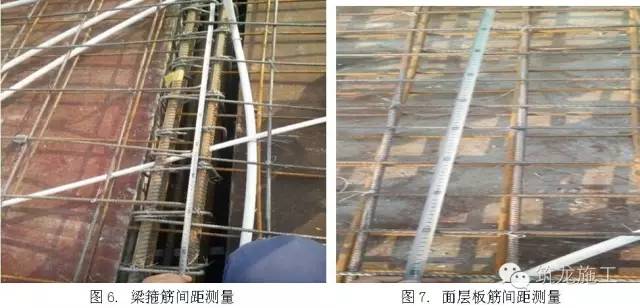 板底筋绑扎好以后,按板量取横向和纵向板底筋间距,并记录下来,等板面筋绑扎好以后,同样量取间距并记录,其允许误差10mm。