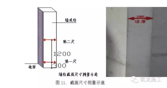 从地面向上300mm和1500mm各测量截面尺寸1次,选取其中与设计尺寸偏差最大的数,记录下来。合格标准[-5,8]mm。