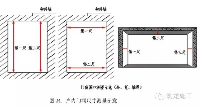 在施工完地面找平层后,同一个户内门洞口寸沿宽度、高度各测2次。若地面找平层未做,就只能检测户内门洞口宽度2次。高度2个测量值与设计值之间偏差的最大值,作为高度偏差的1个实测值;宽度的2个测量值与设计值之间偏差的最大值,作为宽度偏差的1个实测值;墙厚则左、右、顶边各测量一次,3个测量值与设计值之间偏差的最大值,作为墙厚偏差的1个实测值。高度偏差[10,10]mm;宽度偏差[10,10]mm;墙厚偏差[3,3]mm。
