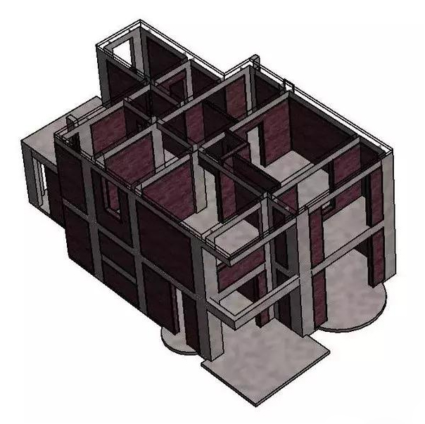 此为例图的3d图示,灰色的混凝土框架柱和梁都是不可拆的,而红色的填充墙可以拆,由于框架结构除了上方的灰色混凝土梁不能拆以外,其他都可以自由变换,所以对于喜欢动不动就装修的用户而言,框架结构的自由很适合他们。