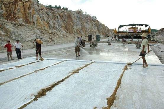 4、养护:混凝土浇筑完毕后,常温条件下12h内应浇水覆盖养护,浇水次数以保持混凝土湿润为宜,养护时间不少于7d,掺有外加剂时养护14d。