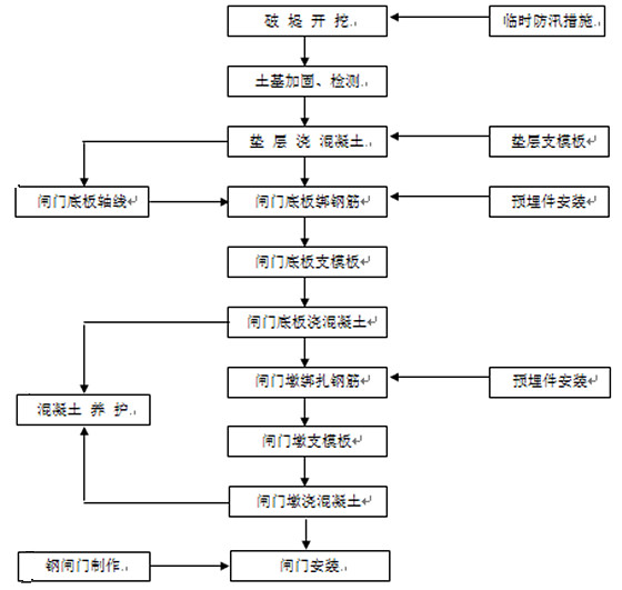 ⑤防汛工程严格按进度计划进行,确保按期验收竣工。抓紧结构施工,为闸门安装留有余地,确保防汛要求。钢闸门结构相对简单,准备现场加工制作。