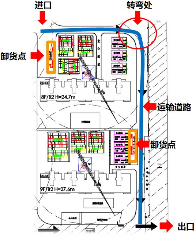 卸货点首先需考虑塔吊吊装能力及施工效率;
