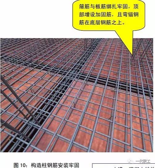 3、构造柱插筋与梁、板钢筋绑扎牢固,必要时采取加工措施,顶部至少再套 2 箍筋,防止插筋变形。