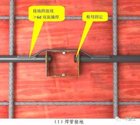 注:1、普通钢导管接地线采用跨焊接方法;