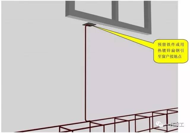 注:设计要求接地的幕墙金属框架和建筑物的金属门窗,应就近与接地干线连接可靠,连接处不同金属间应有防电化腐蚀措施。