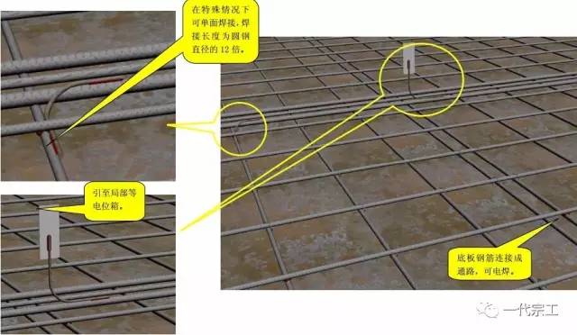 (1)板筋与桩基接地装置做法