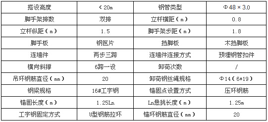 案例工程采用悬挑式脚手架,其搭设技术参数如表所示