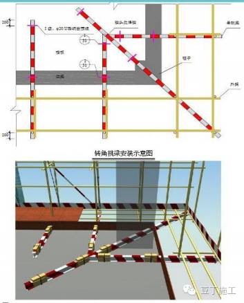 本方案中,脚手架架体结构在平面上存在多个转角(阳角)处,转达角处应采取加强措施: