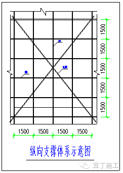 脚手架的纵向传力结构架构件限制不能形成封闭形。如凹字型的脚手架,其两端必须设置横向支撑。并于中间每隔六个间距加设一道横向支撑,如图所示。